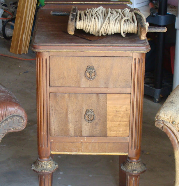 This is the not-so-beautiful before. I found this one sitting out in the rain, all lonely, just like my farm table .